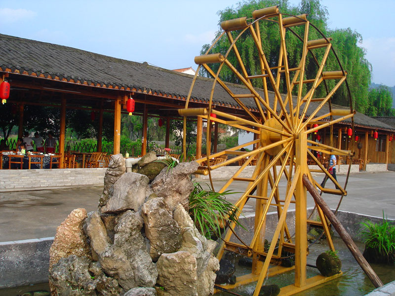 張家界武陵源大作坊美食城是一家集垂釣休閑,特色餐飲,夜市為一體的大型風(fēng)味美食城!位于風(fēng)景如畫的武陵源風(fēng)景區(qū)區(qū)政府所在地,占地3000多平方米,可同時(shí)容納400多人就餐。這里也是景區(qū)內(nèi)匯集土家美食,苗家美食的第一坊!美食城按純木四合院建造,內(nèi)設(shè)酒作坊,豆腐作坊,臘味作坊,糍粑作坊,有垂釣區(qū),燒烤區(qū),菜品自助區(qū),客人廚藝展示區(qū),農(nóng)產(chǎn)品展銷區(qū)等。酒作坊內(nèi)聘請了民間煮酒大師現(xiàn)場煮酒,你有機(jī)會可以現(xiàn)場吃到熱乎乎的頭鍋酒,酒坊內(nèi)有純米酒,包谷燒,高梁酒,有用野果泡制的各種果酒---燈籠酒,楊梅酒,彌猴桃酒等,更有特色的是把高梁酒放在正在生長的楠竹內(nèi),用竹內(nèi)竹膜的香味把酒增香,十二天就把竹子砍下再放養(yǎng)三天就好了,客人要吃現(xiàn)場鋸竹筒酒吃!豆腐坊也是聘請民間老農(nóng)現(xiàn)場用自制的石磨做豆腐,在這里你可以吃到真正有豆香味的原汁原味的石磨豆腐,和渣,菜豆腐,豆腐腦等豆制品!臘味作坊里有冬天用各種香料熏制的正宗湘西藏臘肉,臘豬頭肉,臘香腸,臘豬腳,各種臘制品臘野味等。糍粑坊每天在晚上人多用餐高峰時(shí)現(xiàn)場打滋粑,客人也可以自己參與打糍粑這個(gè)快樂的過程,想受過年時(shí)才有的熱鬧情景!在垂釣區(qū)里我們放養(yǎng)有很多野生魚類,有時(shí)間了你可以來這里休閑垂釣,得到的魚我們就會給你現(xiàn)場加工,有清沌的,紅燒的,青椒燜的,酸湯的,都很好吃哦。燒烤區(qū)里,我們高薪聘請了燒烤大師為你現(xiàn)場制做,你也可以自己動(dòng)手,有烤羊排羊腿,各種串烤,烤全魚,烤全兔等,還有各種鐵板烤可以自己炒著吃!菜品自己選區(qū)里有各種山野菜,壇子菜,干菜,臘味等,有各種鮮活的魚類,河蛘,水魚,田螺,龍蝦等,有各種農(nóng)家的土雞土鴨等,有各種鮮活的野味等你來享受美味呢!客人廚藝展示區(qū)里老板特設(shè)制地幾口大鍋, 很有特色的是, 你可以自己親自下廚, 酸甜苦辣任您自由調(diào)配 。 煮好了, 大家就圍著這“灶臺”合一的飯桌享受張家界的美食了。(張家界的三下鍋是很有特色的,是邊煮邊吃的, 只是這“三下鍋”是“大型三下鍋”而已。到張家界旅游,吃張家界的“三下鍋”是一種獨(dú)有的旅游體驗(yàn),到大作坊吃“大型三下鍋”,則更將會為你的旅程增添一份難得的回味。農(nóng)產(chǎn)品展銷區(qū)里展示著當(dāng)?shù)鼗蛳嫖鞯貐^(qū)最暢銷的農(nóng)產(chǎn)品食品:正宗湘西鄉(xiāng)里臘肉,香腸,各種臘制品,洗車河霉豆腐,靈潔牌剁椒辣醬系列,菌油,正宗茶籽油,苗家酸湯,鄉(xiāng)里正宗葛粉,大壇湘西五糧液,竹簡敲敲酒,張家界茅巖霉茶,野生蜂蜜,高山葛粉,張家界第一山珍巖耳,葛根片等等!