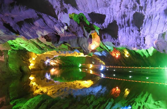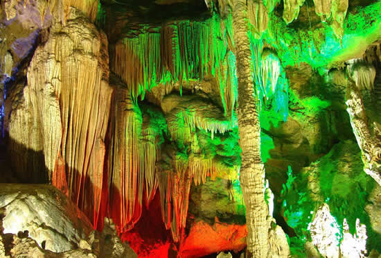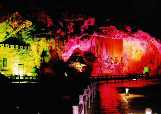 | 奇梁洞位于縣城北四公里處,屬典型的碳酸鹽巖洞,該洞以奇、秀、闊、幽四大特色著稱。洞長6000余米,共分五大景區(qū):即古戰(zhàn)場、畫廊、天堂、龍宮和陰陽河。洞中有山,奇梁洞圖片山中有洞,洞洞相連。它集奇巖巧石,流泉飛瀑于一洞,由千姿百態(tài)的石筍、石柱、石鐘乳構成了一幅幅無比瑰麗的畫卷。一條小溪穿洞而過,水流平緩,燈光打在巖壁上,皺襞倒影在水中,如夢如幻。巖洞用五光十色的霓虹燈打在石筍、石幔及石花上,營造出一個流光溢彩的世界。在洞內有一大廳,據傳是苗民糾集的地方,廳里立著一塊帶一個小孔的石頭,對著小孔“嗚嗚”地吹,整個大廳會回蕩著低沉的號角聲,當年的苗民就是用這種方式傳令的。