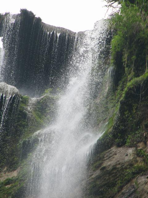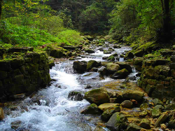 杉刀溝盡頭,有一抹泉水從200多米高的崖頂飄然而下,仿佛一匹白色長練自天而降。飛瀑下臨深潭,綠水泱泱,水霧漫漫,睛雨交加之日,時有彩虹飛升。每當(dāng)山洪瀑發(fā),瀑布猶如一巨龍,飛騰傾瀉,聲若巨雷,蔚為壯觀。