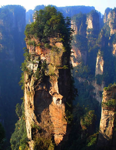 | 袁家界位于張家界國家森林公園北面,是一方山臺地。背依巖峰山巒,面臨幽谷群峰,自東向西延伸。主要景點有后花園、迷魂臺、天下第一橋等。