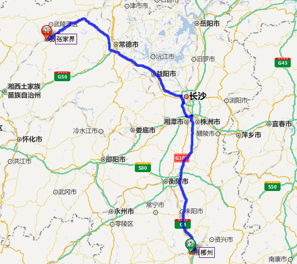 郴州市到張家界自駕車路線圖 郴州市到張家界自駕車旅游動畫演示