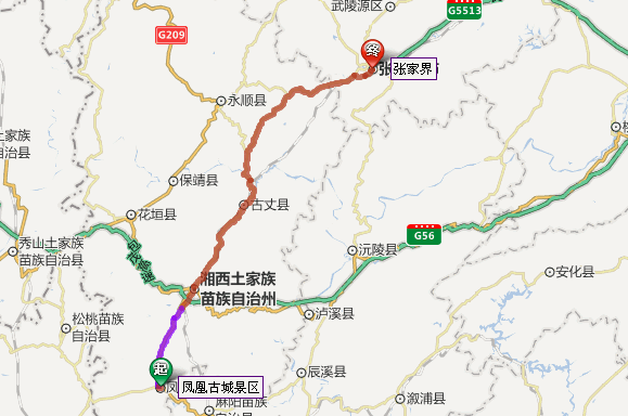 鳳凰古城到張家界自駕車路線圖